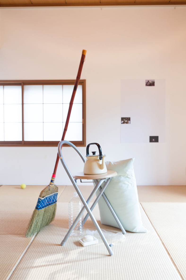 This is not a banana. 日用品、シール 2012 バナナマークのシールが貼られた日用品を固めて置いたもの。