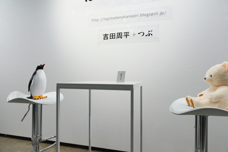 学生・スタッフ・展覧会の関係者等を巻き込みながら、様々な「はじめての話」をする場を設け、そこで起こる状況を作品とした。