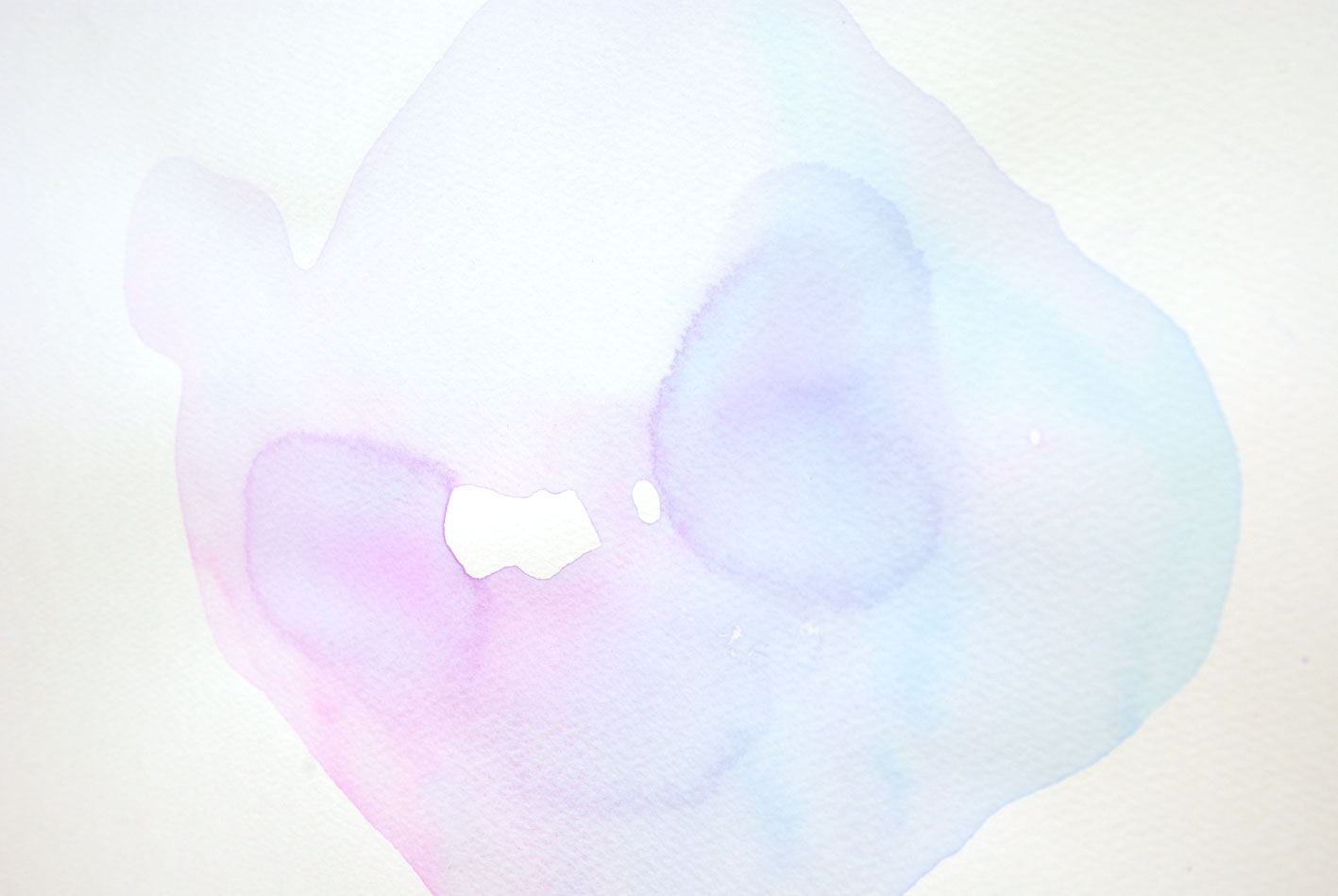 kiss 画用紙、水彩絵具、水 2007 赤色と青色の水たまりが混ざり合う状態を、画用紙に染み込ませ転写。