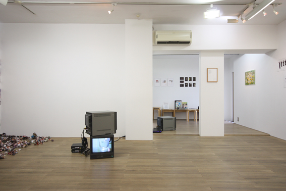 作家自身の生活空間を様々な角度から撮影した記録映像を、展示空間に複数のモニターで放送するビデオインスタレーション。